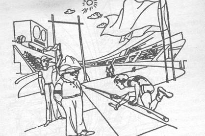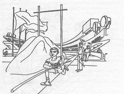 The stadium with a seating capacity of …, a pole-jumper; in good form, a referee; a starter; a cross-bar;