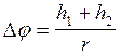 Пусть h1 и h2 отсчитываются от нижнего положения груза. Груз при движении проходит расстояние h1+h2, а колесо поворачивается на угол
