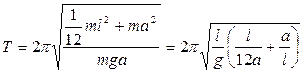 где m- масса стержня, l – его длина; a – расстояние центра масс до точки подвеса. Период колебаний в этом случае