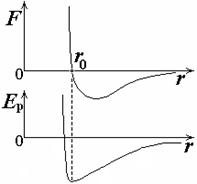 График потенциальной энергии взаимодействия молекул (атомов) представляет собой потенциальную яму (нижний график на рис.1).