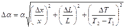 − погрешности измерения приращения x длины стержня, длины стержня L, температуры Т, соответственно.