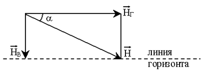 Величину проекции вектора напряженности магнитного поля Земли на горизонтальную плоскость называют горизонтальной составляющей магнитного поля Земли НГ. Направление этой составляющей принимается за направление магнитного меридиана, а вертикальная плоскость, проходящая через него, называется плоскостью магнитного меридиана. Угол между направлением вектора напряженности магнитного поля Земли