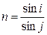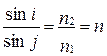 Способ определения показателя преломления плоскопараллельной стеклянной пластинки основан на законе преломления света. Абсолютный показатель преломления какой-либо среды равен отношению синуса угла i падения светового луча в вакууме (или в воздухе) к синусу угла j преломления того же луча в среде, т.е.