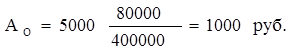 Приобретен автомобиль с предполагаемым пробегом до 400 тыс. км, стоимостью 80 тыс. ден. ед. В отчетном периоде пробег должен составить 5 тыс. км, следовательно, годовая сумма амортизационных отчислений составит: