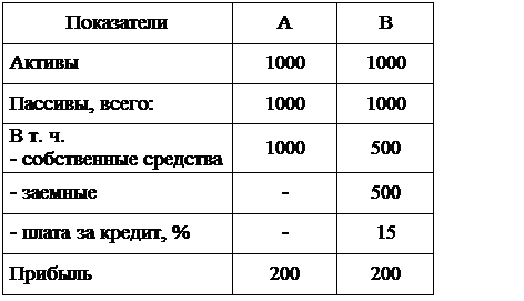Рассмотрим два предприятия А и В, у которых различие только в структуре баланса (таблица 7).