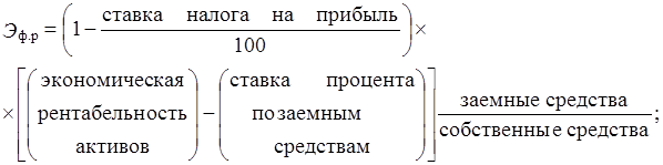 Итак, при одинаковой экономической рентабельности обоих предприятий, рентабельность собственных активов у предприятия В на 5 % больше. Эти 5 % и составляют эффект финансового рычага (Э ф.р).