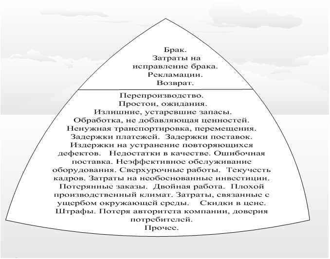 Таким образом, можно говорить об «айсберге» потерь, где видимая их часть (явные потери) составляет четвертую или пятую часть всего объема общих потерь (рисунок 19).