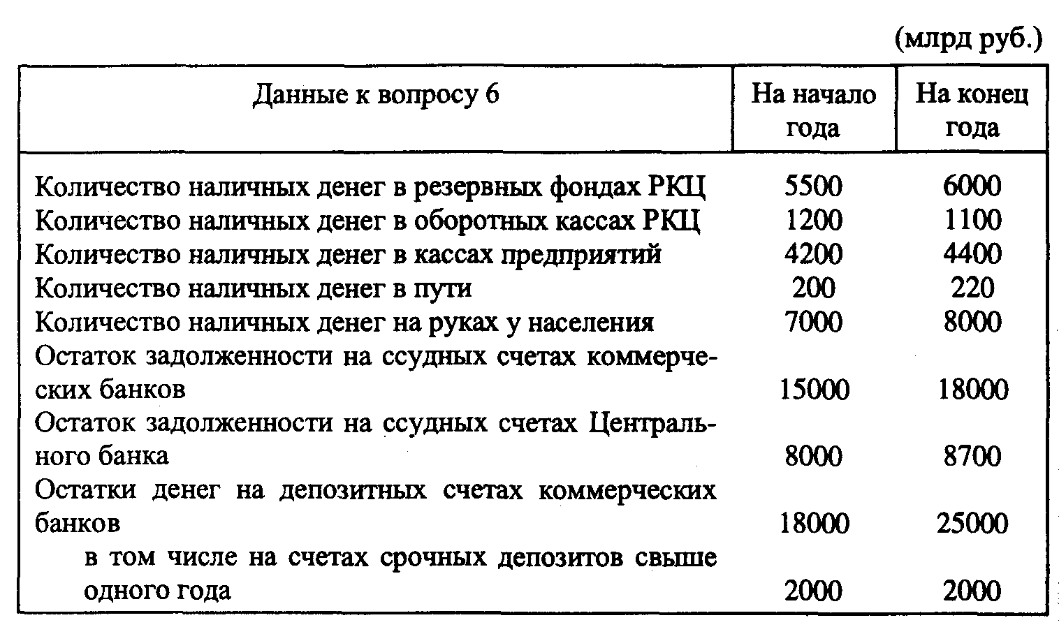 6. Выполните следующее задание. На основании приведенных данных рассчитайте коэффициент банковской мультипликации Кбм, используя денежный агрегат M2:
