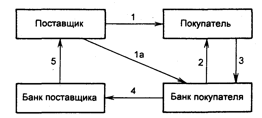 1 - поставка товара (оказание услуг); la - передача платежного требования-поручения в банк покупателя;