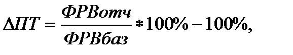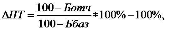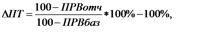 ПРВотч, ПРВбаз - потери рабочего времени в отчетном и базисном периодах (до и после осуществления орг-тех мероприятий), %