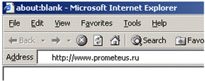 1) Запустите веб-браузер и наберите в поле адреса Интернет-адрес сервера СДО «Прометей», полученный от организатора учебного комплекса. При наборе недопустимы ошибки, опечатки, лишние пробелы и другие отклонения. Завершив набор, нажмите на клавишу Enter, либо щелкните кнопку браузера, осуществляющую переход по адресу. Рисунок 6 демонстрирует пример адреса, набранного в веб-браузере.