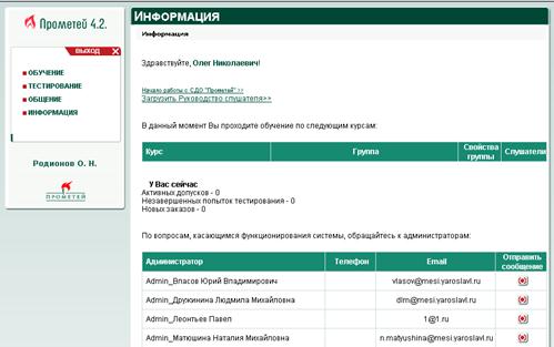 4) Если комбинация регистрационного имени и пароля верна, открывается доступ к интерфейсу (Рисунок 9), и слушатель может приступить к работе.