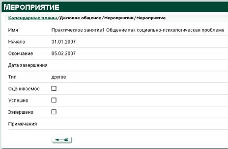 Определить текущее положение в системе можно по строке пути,расположенной под заголовком в области отображения данных (Рисунок 11, помечена красной прерывистой линией). Отдельные элементы строки пути представляют собой активные ссылки – по ним можно вернуться к предыдущим разделам интерфейса. В приведенном примере строка пути позволяет перейти к списку мероприятий календарного плана либо к списку календарных планов слушателя.