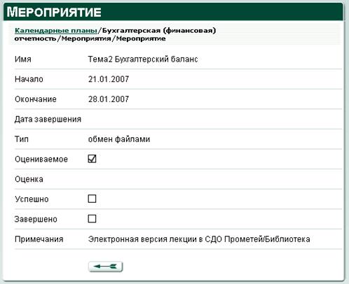 Чтобы просмотреть данные о мероприятии, обратитесь к календарному плану, выберите мероприятие и щелкните маркер (