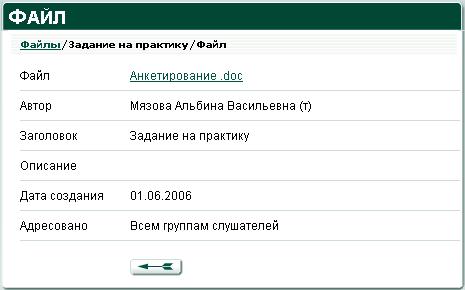 Слушатель может просматривать свойства только файлов, адресованных ему другими участниками учебного процесса, а также тех, которые отправил сам.
