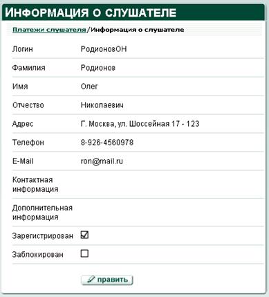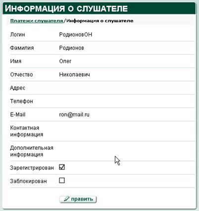 Слушатель может просмотреть или отредактировать свои персональные данные в любой момент времени. Чтобы персональные данные не теряли актуальности, рекомендуется обновлять их в случае изменения тех или иных сведений.