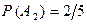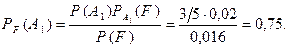 – деталь изготовлена вторым рабочим, F – деталь бракована. Из условия следует, что всю продукцию можно предполагать состоящей из 5-ти частей (3+2=5), причем на долю первого рабочего приходится 3 части из этих 5-ти, на долю второго – 2 части. Тогда, по классическому определению вероятности,