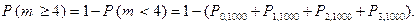 Искать каждое из слагаемых этой суммы и затем выполнять суммирование – такое решение не представляется рациональным из-за большого числа слагаемых и потому, что таблица функции Пуассона не дает искомых значений с требуемой в данном случае точностью. Воспользуемся переходом к противоположному событию: