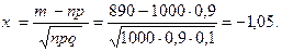 Найти вероятность того, что число стандартных деталей в данной партии окажется равным 890.