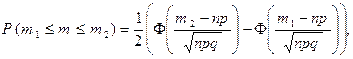 .Тогда вероятность того, что число m наступлений события А в этих n испытаниях будет заключено в границах от