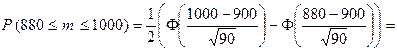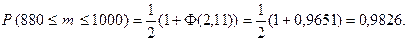 Пример. Каждая из 1000 деталей партии стандартна с вероятностью 0,9. Найти вероятность того, что число стандартных деталей этой партии будет не меньше 880.