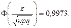 Пример. Подлежат исследованию 1000 проб руды. Вероятность промышленного содержания металла в каждой пробе равна 0,15. Найти границы, в которых с вероятностью 0,9973 будет заключено число проб руды с промышленным содержанием металла.