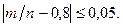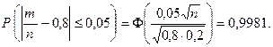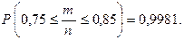 Пример. В лесхозе приживается в среднем 80% саженцев. Сколько саженцев надо посадить, чтобы с вероятностью 0,9981 можно было утверждать, что доля прижившихся саженцев будет находиться в границах от 0,75 до 0,85.