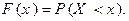 значение которой в точке x численно равно вероятности того, что в произвольном испытании значение случайной величины Х окажется меньше чем х, т.е.