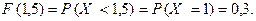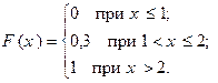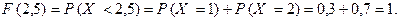 (Или, другими словами, так как все значения данной случайной величины менее 2,5, то событие (Х < 2,5) является достоверным, а потому его вероятность равна 1.) Аналогично, при любом значении переменной х, которое более или равно 2,будем иметь