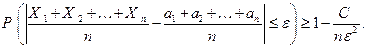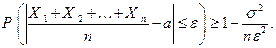 – некоторое число. Тогда вероятность того, что среднее арифметическое этих случайных величин отличается от среднего арифметического их математических ожиданий не более чем на