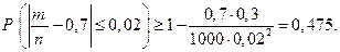 Пример. Вероятность сделать покупку для каждого из покупателей магазина равна 0,7. Почему нельзя применить неравенство Чебышёва для оценки вероятности того, что из 1000 покупателей доля таких, которые приобретут в магазине товар, будет заключена в границах от 0,67 до 0,72? Как следует изменить левую границу, чтобы применение неравенства Чебышёва стало возможным?