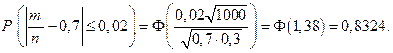 Точно такая же вероятность может быть найдена по следствию 2 из интегральной теореме Муавра-Лапласа: