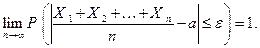 Другими словами, теорема Чебышёва утверждает, что среднее арифметическое некоторого числа случайных величин, имеющих одинаковое математическое ожидание, сходится по вероятности к их общему математическому ожиданию.