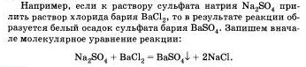 Белое вещество выпадает в осадок, то рядом с его формулой ставят стрелку, направленную вниз, а если в ходе реакции выделяется газообразное вещество, то рядом с его формулой ставят стрелку, направленную вверх.