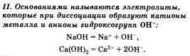 По характеру образующихся ионов различают три типа электролитов: кислоты, основания и соли.