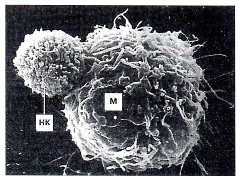 Рисунок 2 – NK-клетка (НК) атакует клетку-мишень (М)