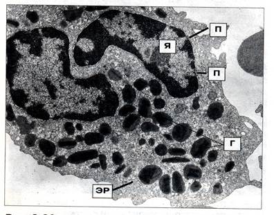 Я – ядро, П – ядерные поры, Г – гранулы, ЭР – эндоплазматическая сеть