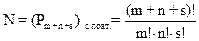 Пример 1.6. Каким числом способов можно разделить m + n + s предметов на три группы, чтобы в одной группе было m предметов, в другой - n предметов, в третьей - s предметов?