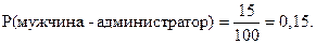 1. В банке работают 100 человек, N = 100. Из них 15 – мужчины-администраторы, M = 15. Следовательно,