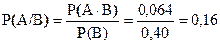 По условию: Р(АB) = 0,064; Р(В) = 0,4; Р(А) = 0,21.