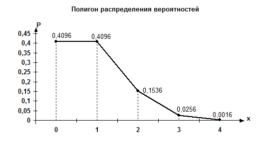 | Р | 0,4096 | 0,4096 | 0,1536 | 0,0256 | 0,0016 |