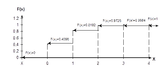 P(X £ 2) = 0,4096 + 0,4096 + 0,1536 = 0,9728.