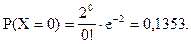 Р(Х = 0) = 0,1353; Р(Х = 1) = 0,2707;