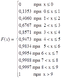 Проверим: 0,1353 + 0,2707 + 0,2707 + 0,1804 + 0,0902 + 0,0361 + 0,0120 +