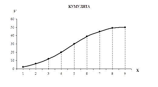 Для того чтобы построить кумуляту, необходимо рассчитать накопленные частоты или частости.