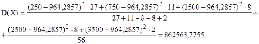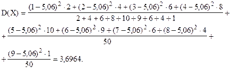 Так как частоты - неодинаковы, для расчета дисперсии используем формулу (6.12)