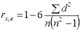ранжируются (упорядочиваются по величине). Обозначим через d разность между рангами значений x и