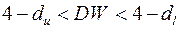 Это наиболее известный способ обнаружения автокорреляции первого порядка. Пусть n ¾ число наблюдений, m ¾ число факторов модели, a = 0,05 ¾ уровень значимости. По таблицам распределения Дарбина-Уотсона определяются числа