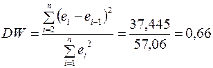 , неравенство выполняется. Следовательно, имеет место положительная автокорреляция.