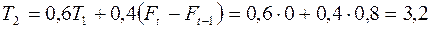 Рассмотрим данные предыдущего примера и проведем по ним экспоненциальное сглаживание с поправкой на тренд. Задаем параметр
